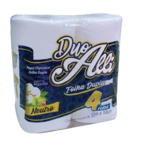 •Folha Dupla •Pacote com 4 rolos cada •Branco Luxo •Fardo com 16 pacotes •Marca: Duo Alli
